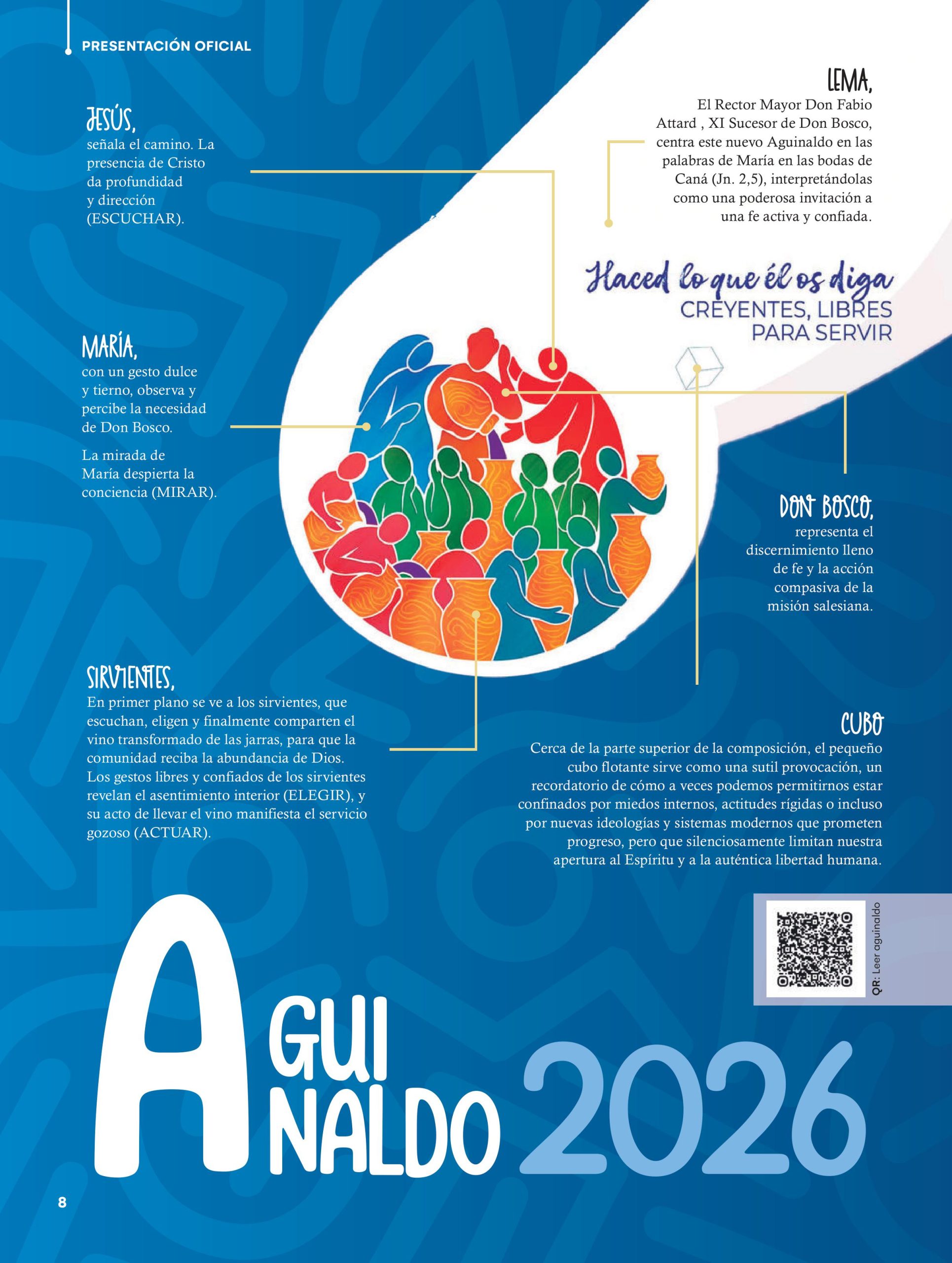 El Rector Mayor Don Fabio Attard , XI Sucesor de Don Bosco, centra este nuevo Aguinaldo «Hagan lo que él les diga» en las palabras de María en las bodas de Caná (Jn. 2,5), interpretándolas como una poderosa invitación a una fe activa y confiada.